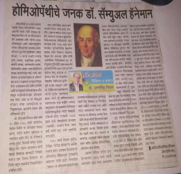 Dr.Nikam's artical on homeopathy founder samuel hahnemann in punyanagari 7-4-2015